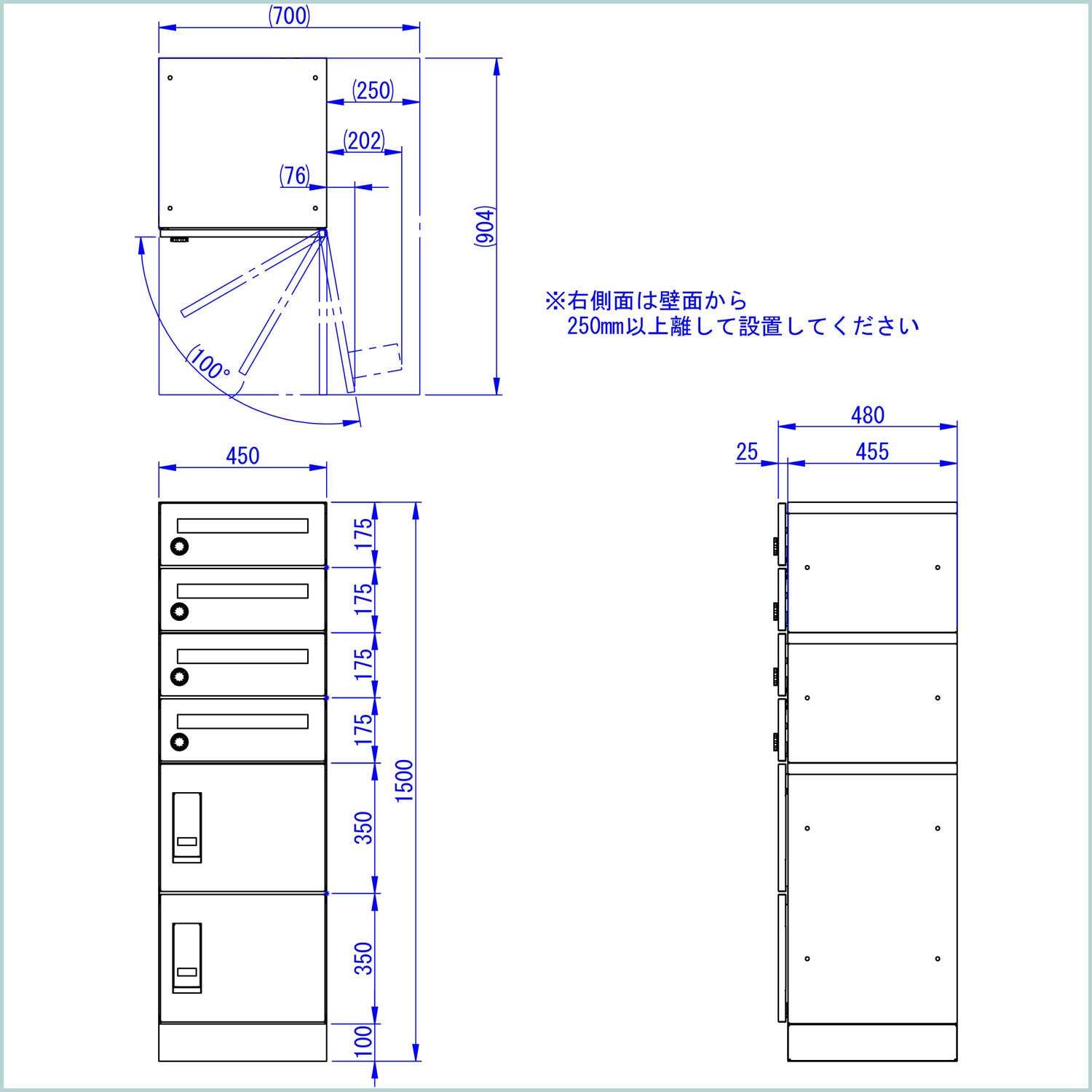 集合住宅(アパート・マンション)向け宅配ボックス 宅配KEEPER A スタンダードタイプ 耐久性 防水性 補助金 4戸向け ポスト付きセット商品