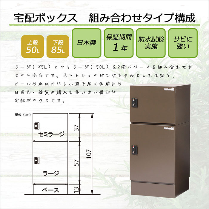 戸建て向け宅配ボックス 宅配KEEPER tumiki 耐久性 防水性 補助金 「セミラージ」+「ラージ」+「ベース」のセット商品