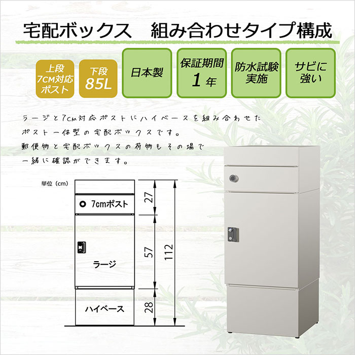 戸建て向け宅配ボックス 宅配KEEPER tumiki 耐久性 防水性 補助金 「7cmポスト」+「ラージ」+「ハイベース」のセット商品