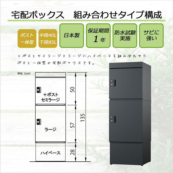 戸建て向け宅配ボックス 宅配KEEPER tumiki+ポスト 耐久性 防水性 補助金 「+ポストセミラージ」+「ラージ」+「ハイベース」 Hセット