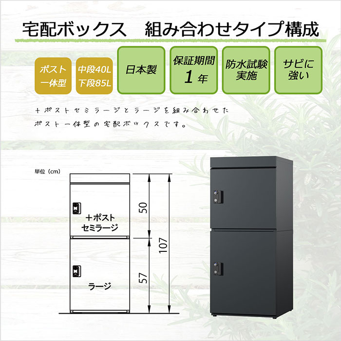 戸建て向け宅配ボックス 宅配KEEPER tumiki+ポスト 耐久性 防水性 補助金 「+ポストセミラージ」+「ラージ」 Fセット
