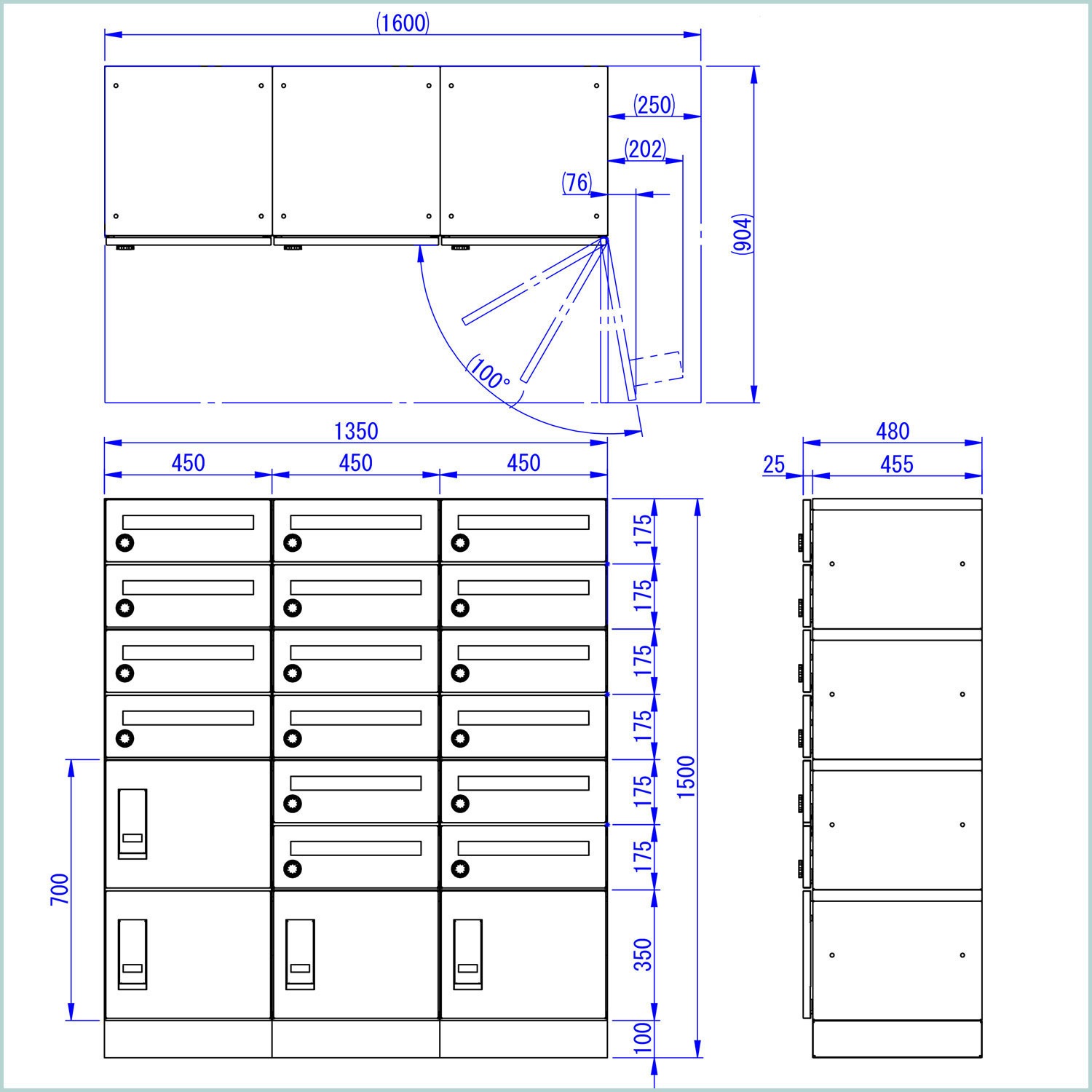 エスディエスの集合住宅向け宅配ボックス宅配KEEPER A「スタンダード」は、大きな荷物も受け取れる大容量100Lの宅配ボックスを揃えた宅配ボックスです。3タイプ(100L、45×2L、45L)のボックスとポストを必要とする戸数分だけ自由に組み合わせて設置します。