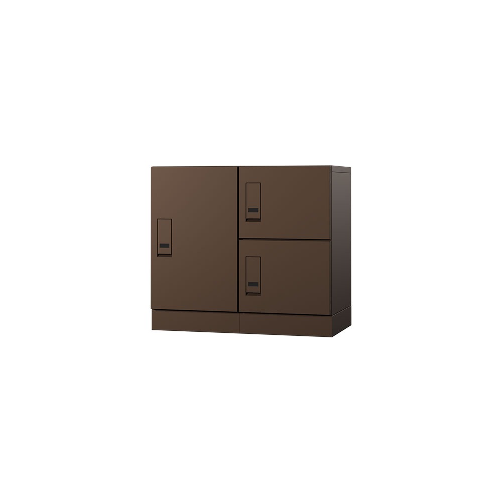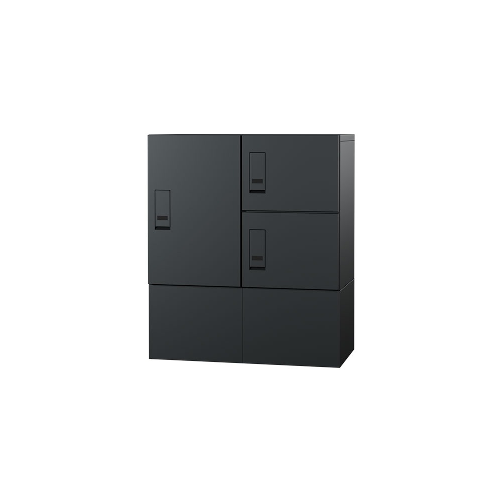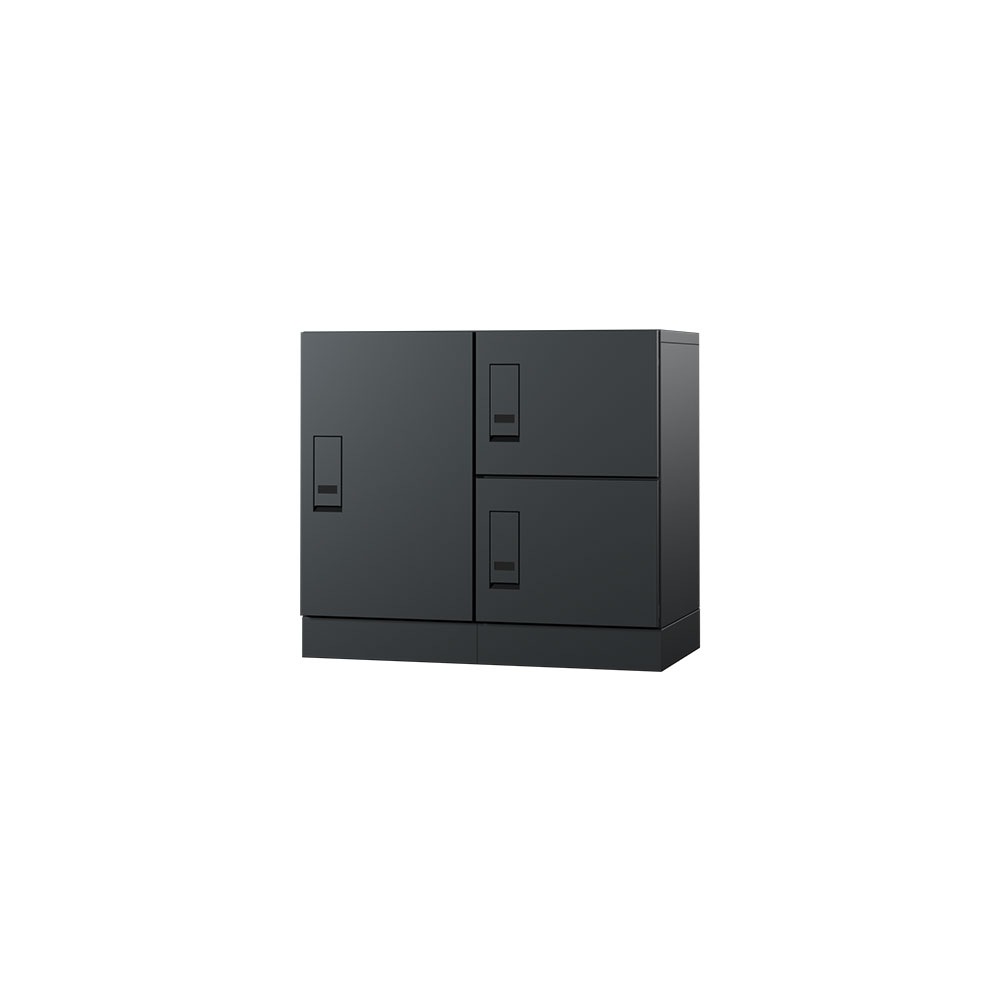エスディエスの集合住宅向け宅配ボックス宅配KEEPER A「スタンダード」は、大きな荷物も受け取れる大容量100Lの宅配ボックスを揃えた宅配ボックスです。3タイプ(100L、45×2L、45L)のボックスとポストを必要とする戸数分だけ自由に組み合わせて設置します。