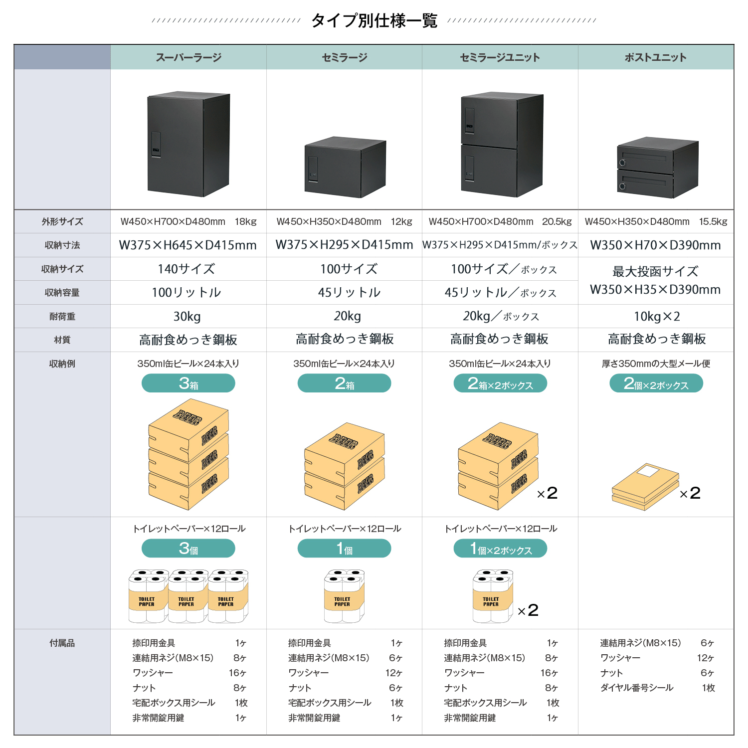 スタンダードは3タイプのボックスとポストを自由に組み合わせて設置ができる宅配ボックスです。
