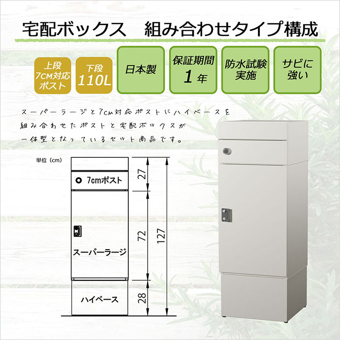 戸建て向け宅配ボックス 宅配KEEPER tumiki 耐久性 防水性 補助金 「7cmポスト」+「スーパーラージ」+「ハイベース」のセット商品