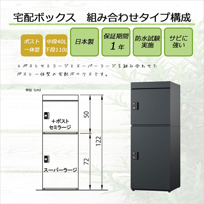 戸建て向け宅配ボックス 宅配KEEPER tumiki+ポスト 耐久性 防水性 補助金 「+ポストセミラージ」+「スーパーラージ」 Iセット